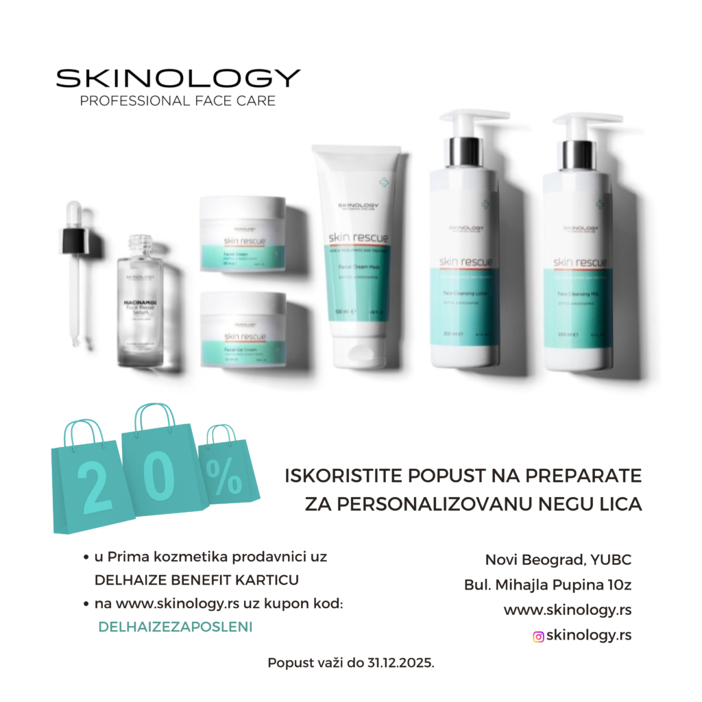 Popust od 20% na preparate za negu lica pri kupovini u prodavnici i/ili online shop-u uz promo kod: DELHAIZEZAPOSLENI